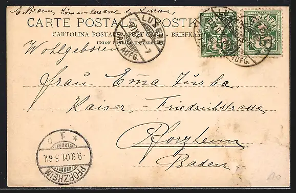 alte Ansichtskarte, gelaufen 1901, Abriebspur re. oben, guter Zustand