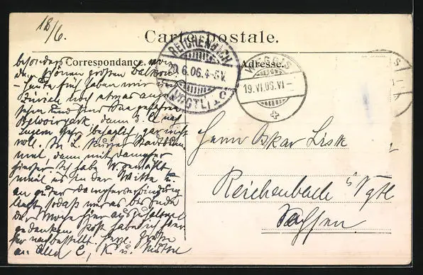 alte Ansichtskarte, gelaufen 1906, Briefmarke entfernt, rückseitig Oberflächenschaden, guter Zustand