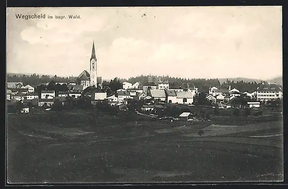 AK Wegscheid /Bayr. Wald, Ortsansicht mit Kirche