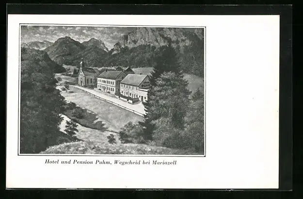 AK Wegscheid, Blick auf Hotel-Pension Puhm