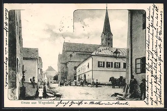 AK Wegscheid / Passau, Strassenpartie mit Kirche