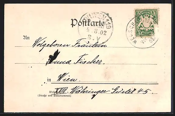alte Ansichtskarte, gelaufen 1902, Stempelspur, guter Zustand