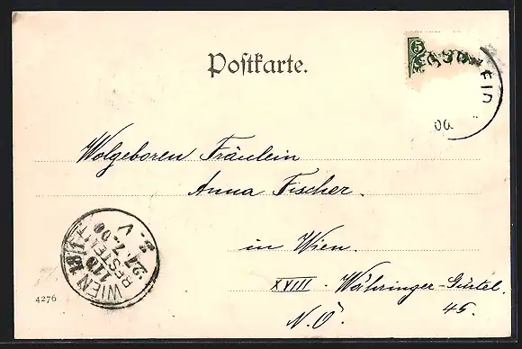 alte Ansichtskarte, gelaufen 1900, Briefmarke entfernt, guter Zustand