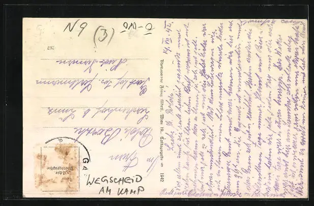 alte Ansichtskarte, gelaufen 1942, Briefmarke entfernt, guter Zustand