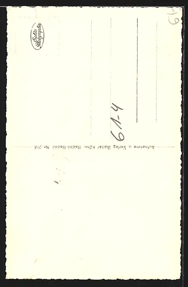 Personenbezogene Daten auf der Rückseite der Karte wurden durch blauen Textmarker unkenntlich gemacht. Die blauen Stellen sind auf die Vorderseite durchgeweicht und wirken sich negativ auf das Postkartenfoto aus