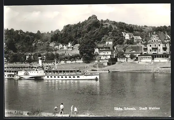 AK Wehlen, Elbe-Dampfer Dresden passiert das Strand-Hotel