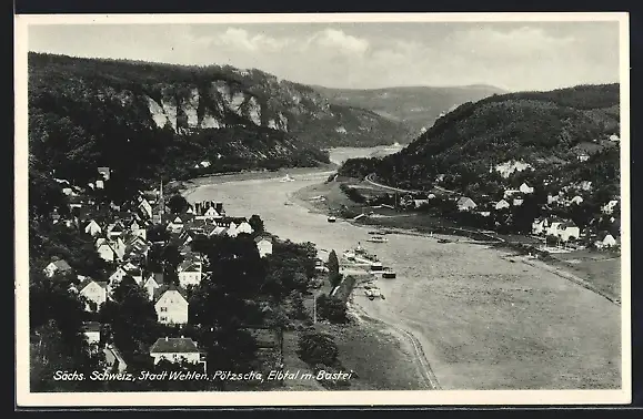 AK Wehlen-Pötzscha /Sächs. Schweiz, Blick ins Elbtal mit Bastei