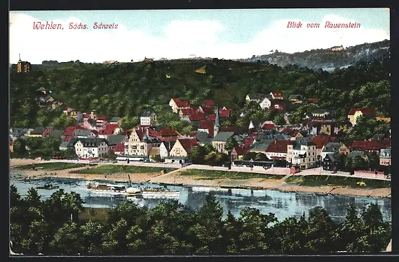 AK Wehlen /Sächs. Schweiz, Blick vom Rauenstein auf den Ort