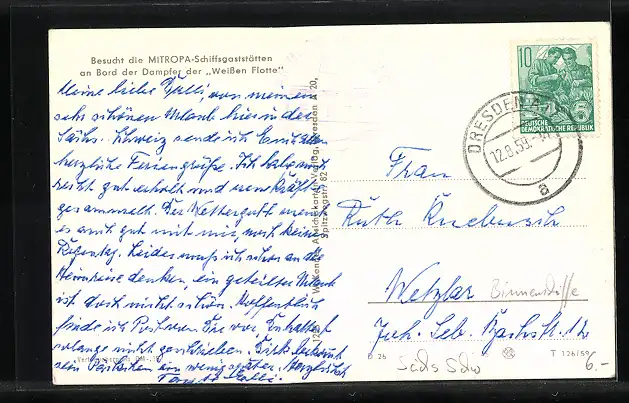 alte Ansichtskarte, gelaufen 1959, guter Zustand