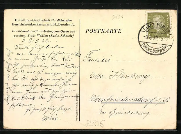 AK Wehlen /Sächs. Schweiz, Ernst-Stephan-Claus-Haus in der Gesamtansicht