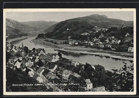 AK Wehlen /Sächs. Schweiz, Ortsansicht mit Pötzscha aus der Vogelschau