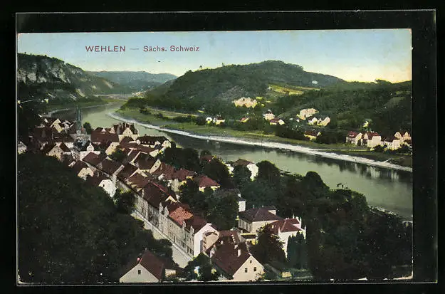 AK Wehlen /Sächs. Schweiz, Teilansicht aus der Vogelschau