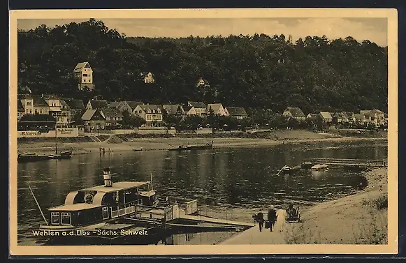 AK Wehlen a. d. Elbe, Flusspartie mit Fähre