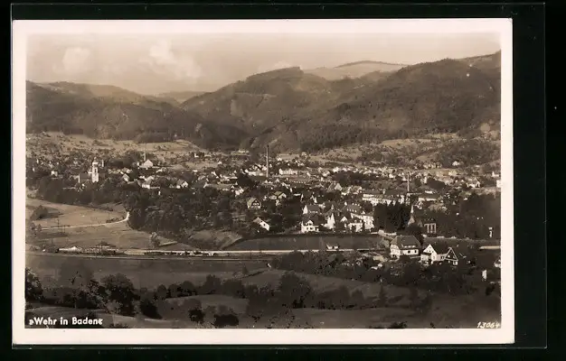 AK Wehr / Baden, Totalansicht mit Gebirge im Hintergrund