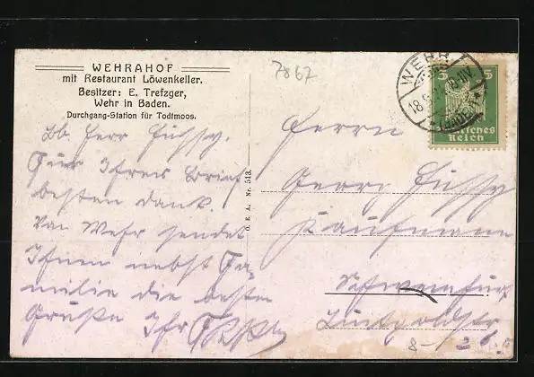 AK Wehr i. B., Wehrahof mit Restaurant Löwenkeller