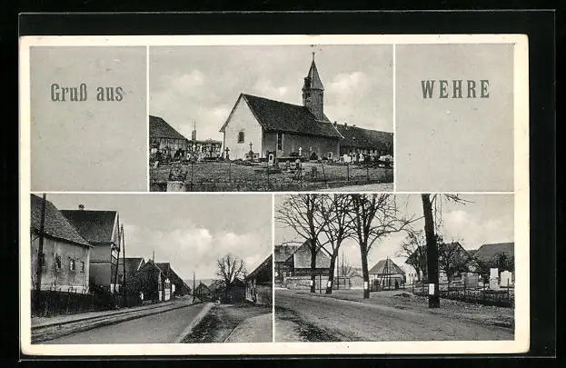 AK Wehre, Kirche mit Friedhof, Strassenpartie