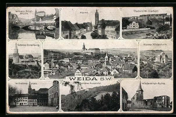AK Weida, Markt, Schloss Osterburg, Wilhelmsplatz