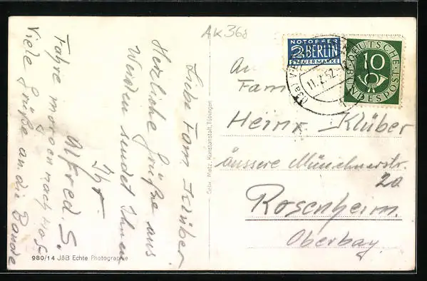 alte Ansichtskarte, gelaufen 1952, guter Zustand
