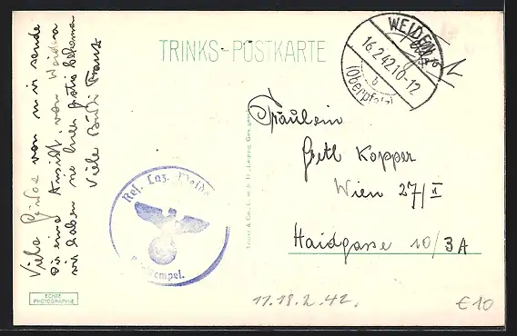 alte Ansichtskarte, gelaufen 1942, guter Zustand