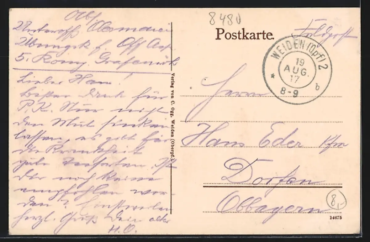 alte Ansichtskarte, gelaufen 1917, guter Zustand