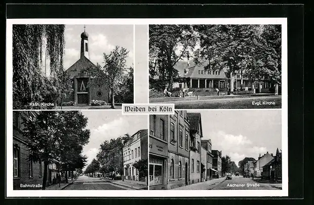 AK Weiden bei Köln, Kirchen, Bahnstrasse, Aachener Strasse