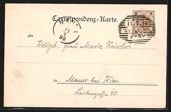 alte Ansichtskarte, gelaufen 1898, guter Zustand