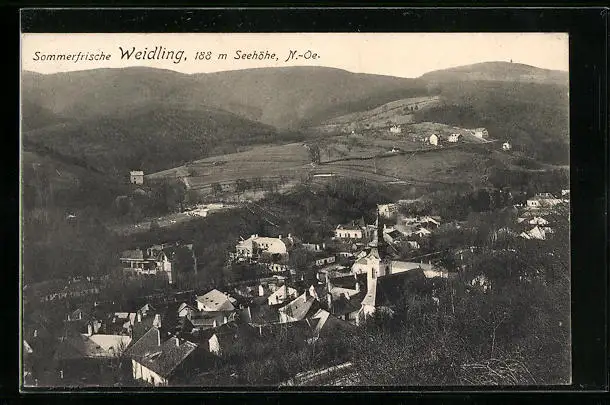 AK Weidling, Gesamtansicht mit Umgebung von oben