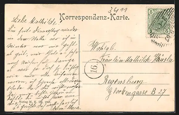 alte Ansichtskarte, gelaufen 1907, guter Zustand