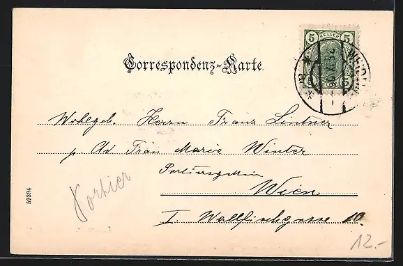 alte Ansichtskarte, gelaufen 1906, Stempelspur, guter Zustand