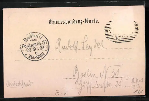 alte Ansichtskarte, gelaufen 1902, Briefmarke entfernt, rückseitig Oberflächenschaden, Stempelspur, Eckknick oben li., guter Zustand