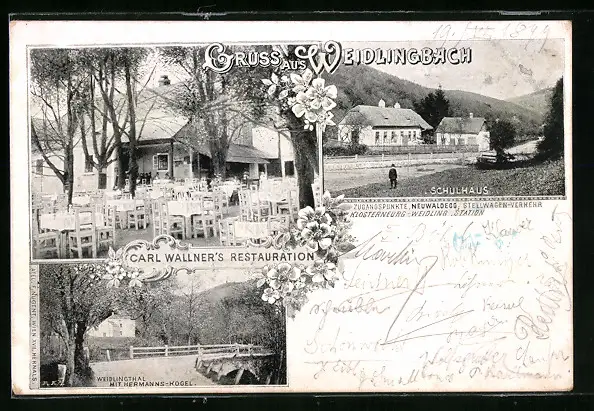 AK Weidlingbach, Gasthaus Carl Wallners Restauration, Schulhaus, Weidlingthal