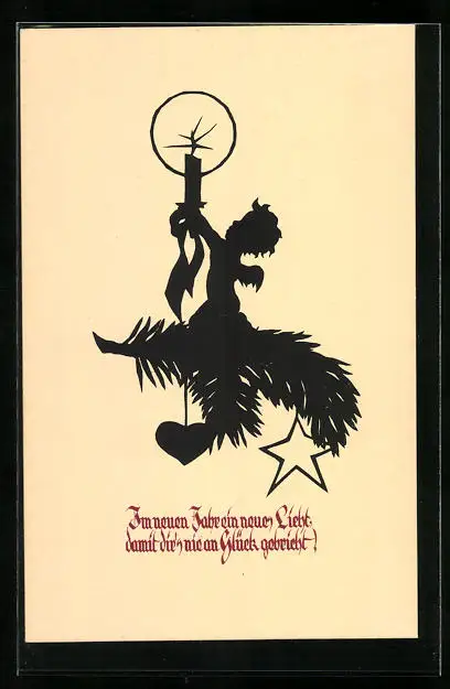 AK Weihnachtsengel mit Kerze auf Tannenzweig