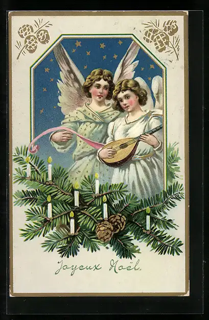 AK Weihnachtsengel mit Laute und Tannenzweig