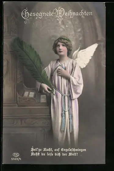 AK Weihnachtsengel mit Palmzweig an der Orgel