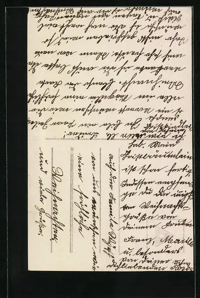 Personenbezogene Daten auf der Rückseite der Karte wurden durch blauen Textmarker unkenntlich gemacht. Die blauen Stellen sind auf die Vorderseite durchgeweicht und wirken sich negativ auf das Postkartenfoto aus