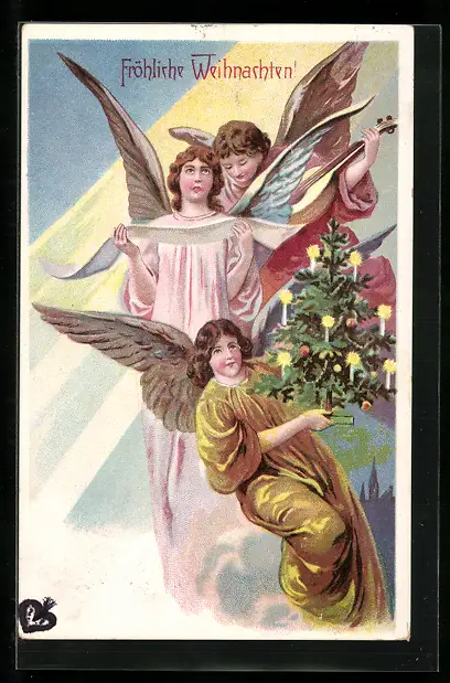 AK Weihnachtsengel mit Tannenbaum, Fröhliche Weihnachten