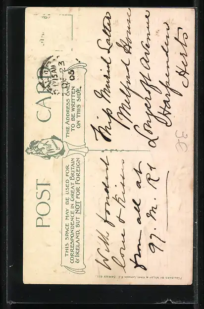 alte Ansichtskarte, gelaufen 1905, Briefmarke entfernt, guter Zustand