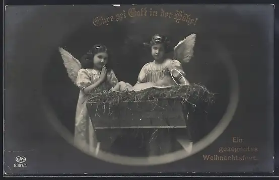 AK Weihnachtsengel stehen an der Krippe mit dem Christkind
