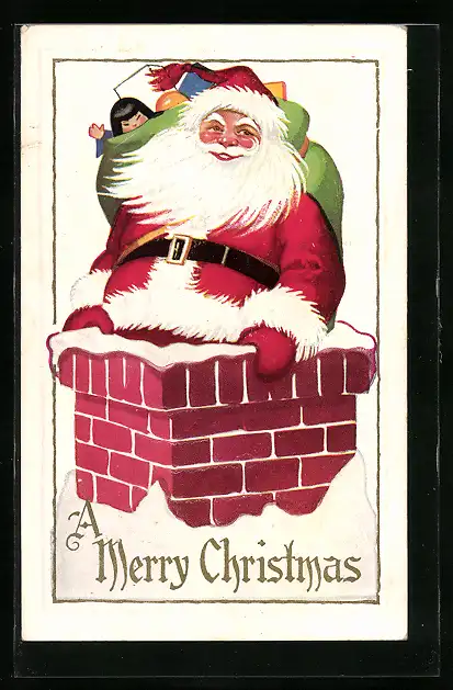 AK Weihnachtsmann mit Geschenken in einem Schornstein