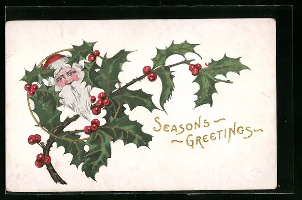 AK Weihnachtsmann mit Stechpalmenzweigen