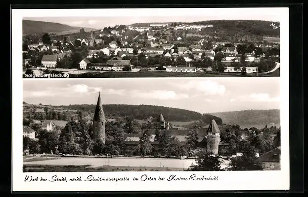 AK Weil der Stadt, Galgenbergsiedlung, Nördliche Stadtmauerpartie im Osten der Stadt