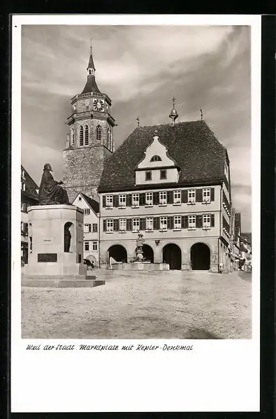 AK Weil der Stadt, Marktplatz mit Kepler-Denkmal