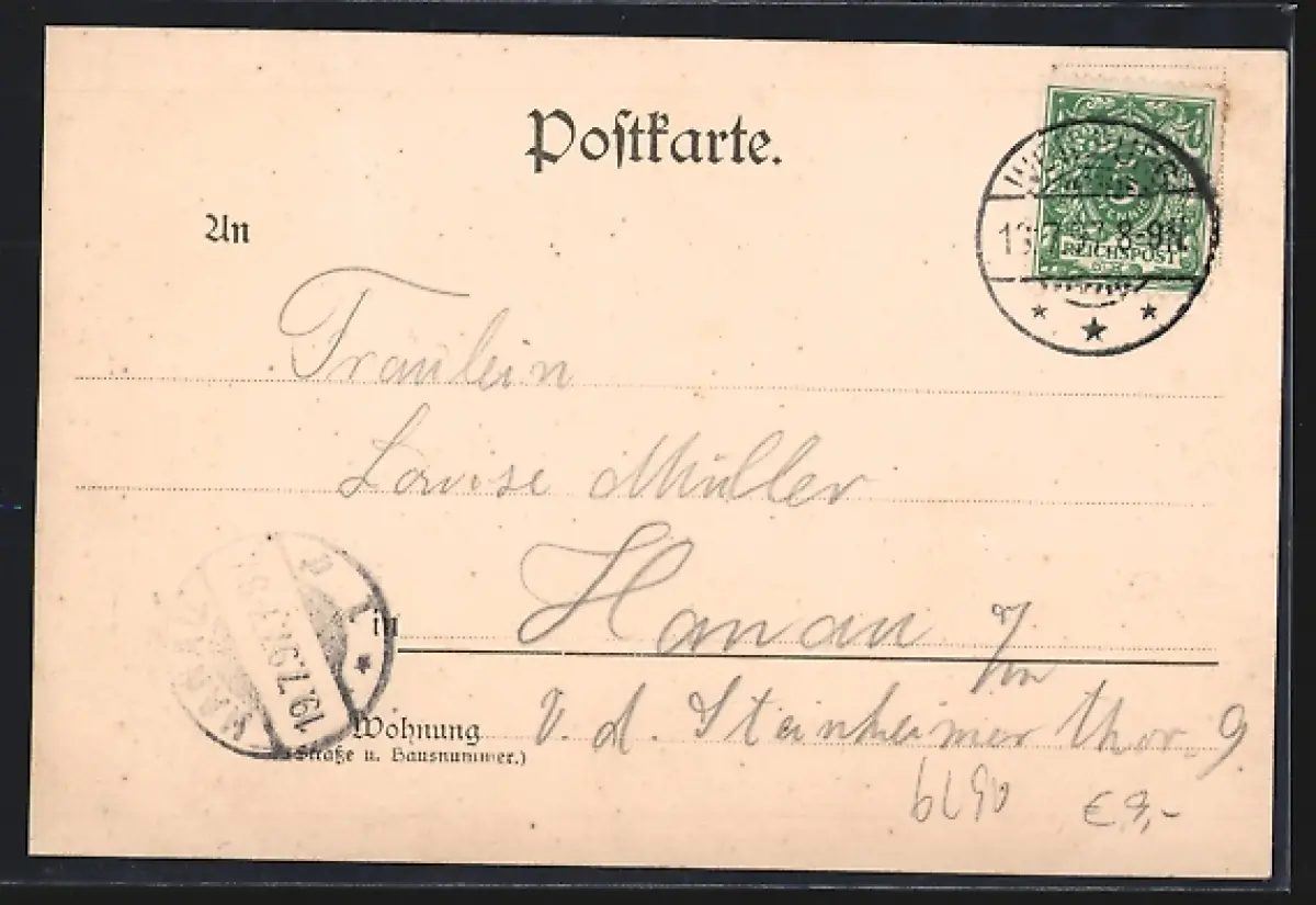 alte Ansichtskarte, gelaufen 1897, Stempelspur, guter Zustand