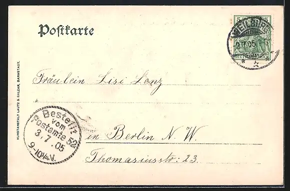 alte Ansichtskarte, gelaufen 1905, Eckknick unten re., Stempelspur, guter Zustand