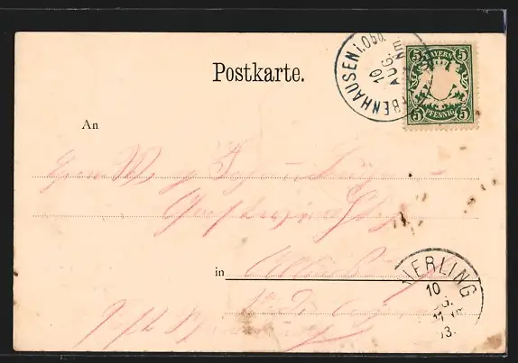 alte Ansichtskarte, gelaufen 1903, Stempelspur, guter Zustand