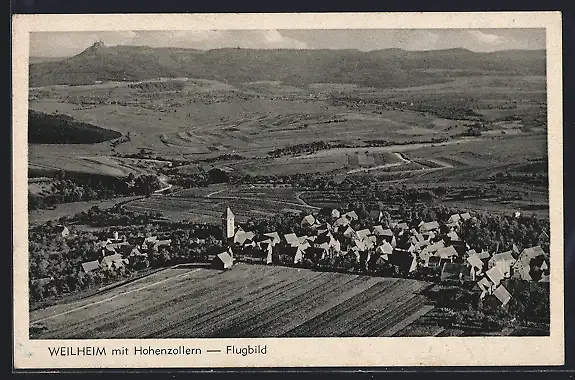 AK Weilheim / Hechingen, Flugbild des Ortes samt Hohenzollern