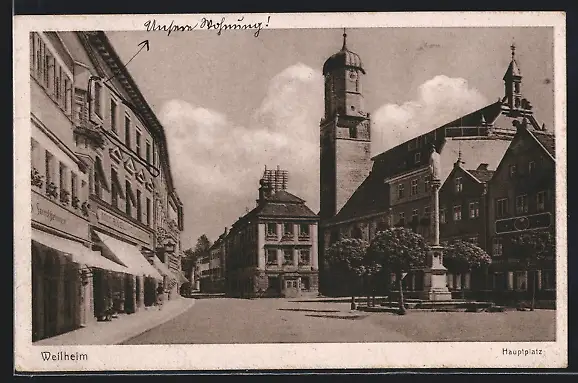 AK Weilheim / Obb., Hauptplatz mit Denkmal