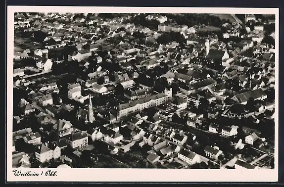 AK Weilheim /Obb., Teilansicht mit Kirche