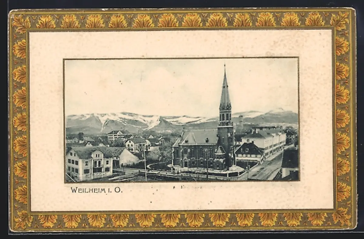 AK Weilheim / Obb., Teilansicht mit Kirche