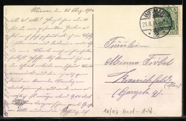 alte Ansichtskarte, gelaufen 1914, guter Zustand